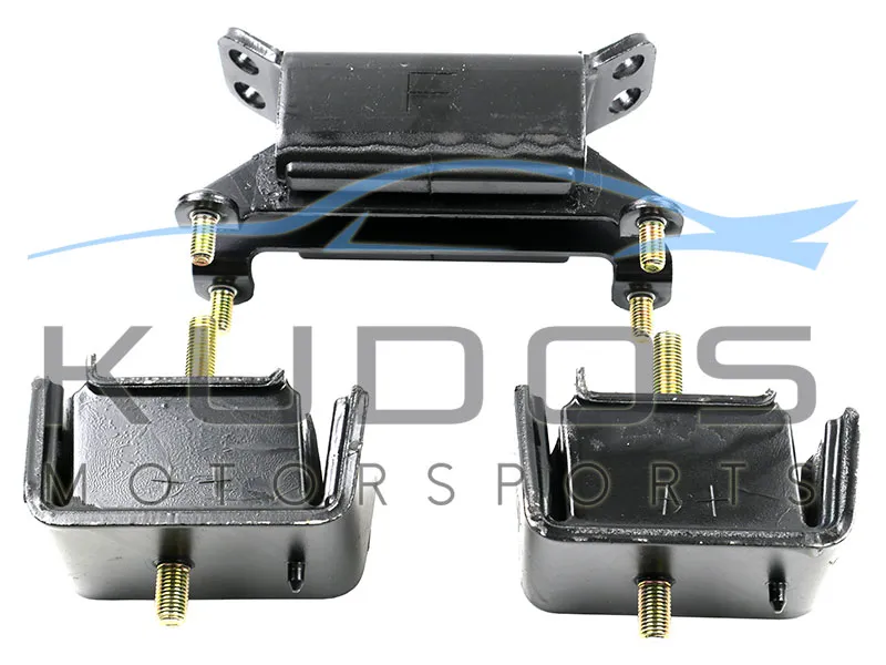 Designed for the Nissan Skyline GT-R R32 & R33 models, with 5MT FS5R30A transmission, this set features upgraded, reinforced rubber that significantly enhances damage resistance. By reducing both engine and transmission vibration and tilt during acceleration, braking, and cornering, these mounts improve throttle response, shifting precision, and overall cornering performance.